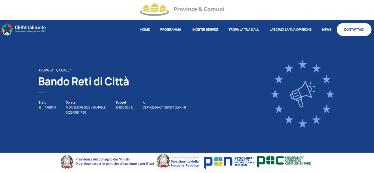 La Commissione europea ha lanciato il bando “Networks of Towns” nell’ambito del programma Citizens, Equality, Rights and Values (CERV) per il 2026, con l’obiettivo di sostenere reti transnazionali di comuni e autorità locali che favoriscano la cooperazione, gli scambi tra cittadini e la promozione dei valori e dei diritti fondamentali dell’Unione europea. Questa call si inserisce nel Work Programme 2026-2027 ed è pensata per rafforzare la partecipazione democratica e la collaborazione civica a livello locale e oltre confine.