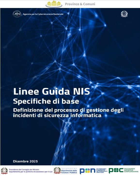 ACN ha pubblicato a dicembre 2025 le linee guida CAD per la "Definizione dei processi e delle procedure per la gestione degli incidenti di sicurezza informatica" documento che si applica a tutte le Pubbliche Amministrazioni, Province comprese.